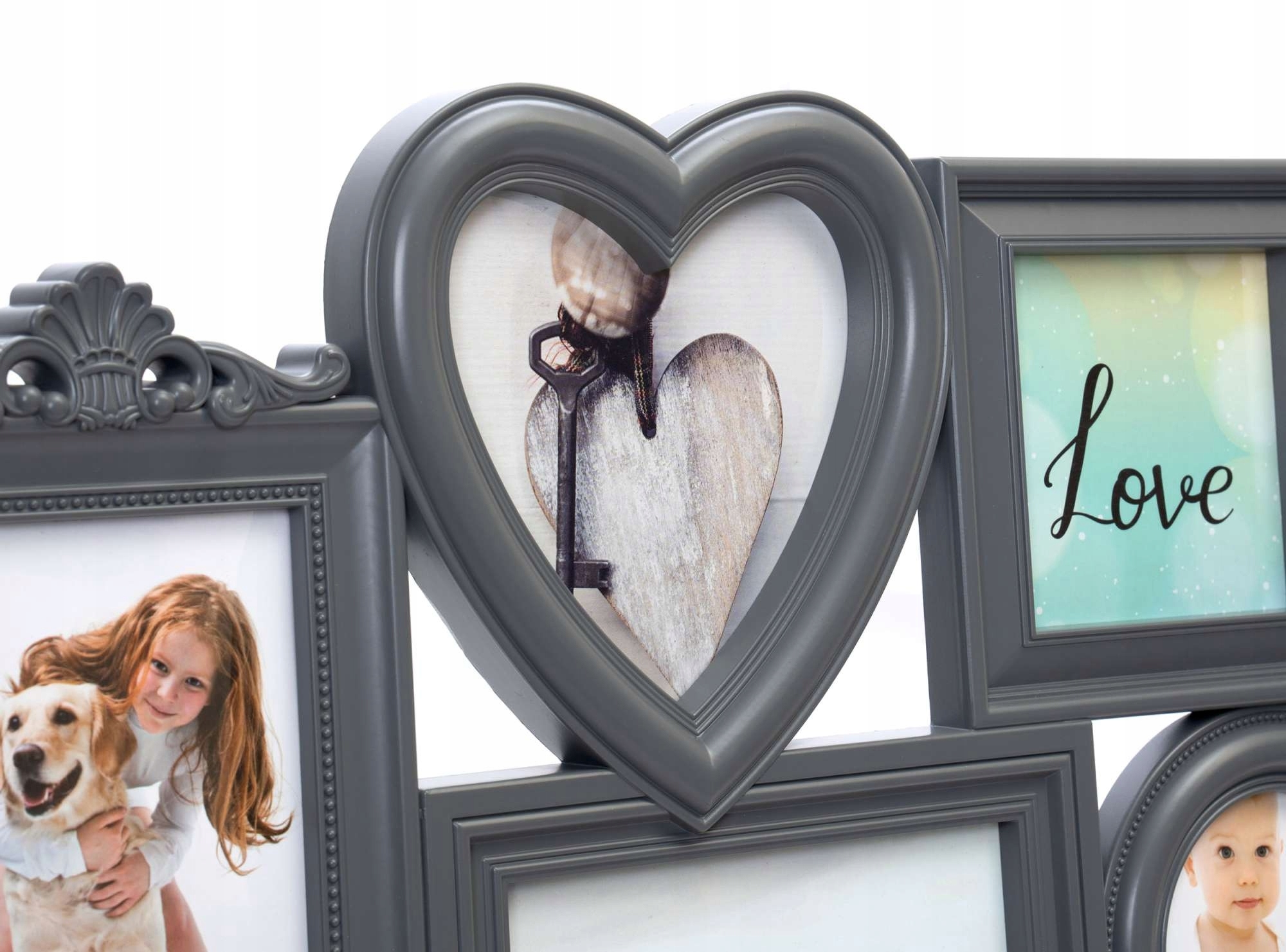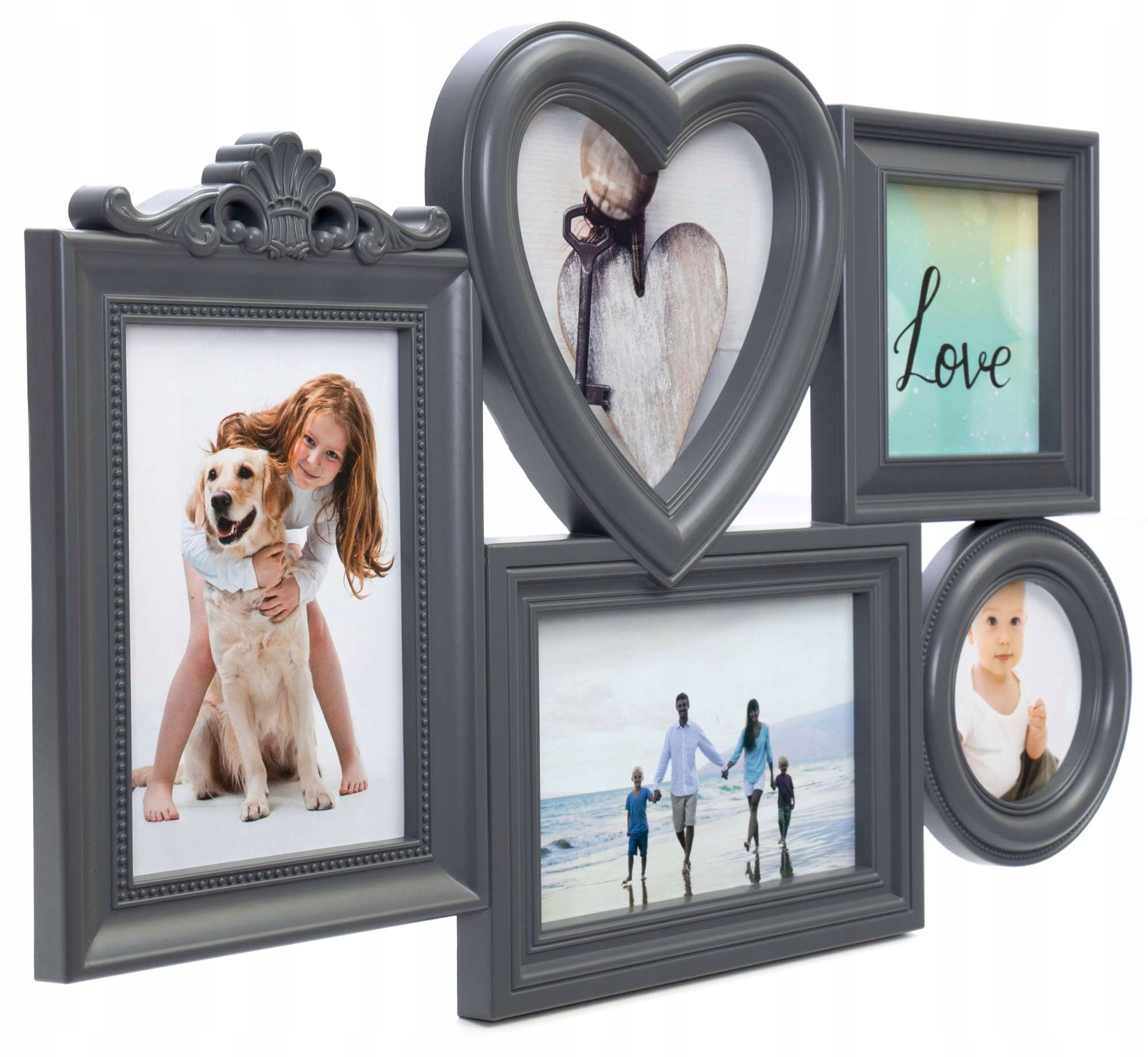Фото кадра 10x15 Multiramka Photo 5 фото серые коллаж на стене сердце