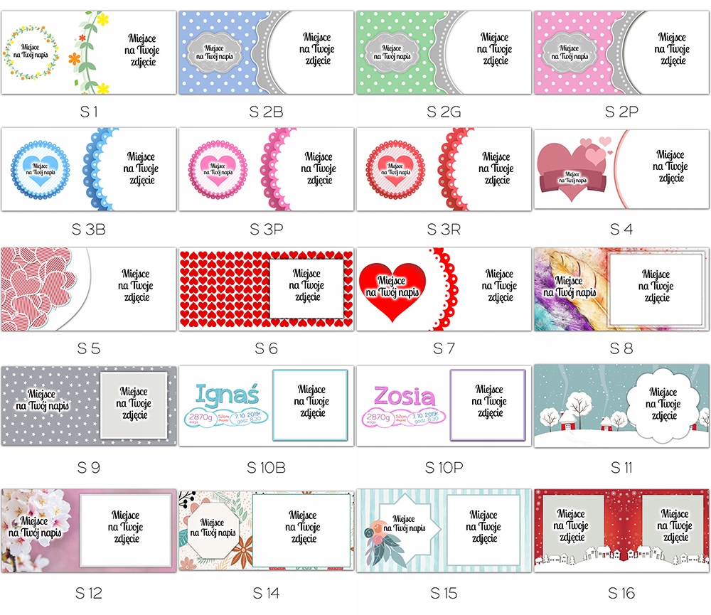 Если вы пользуетесь дополнительными услугами по дизайну, вы можете выбрать один из шаблонов ниже. Каждую из них мы можем свободно персонализировать - менять надписи, количество фотографий и т.д.