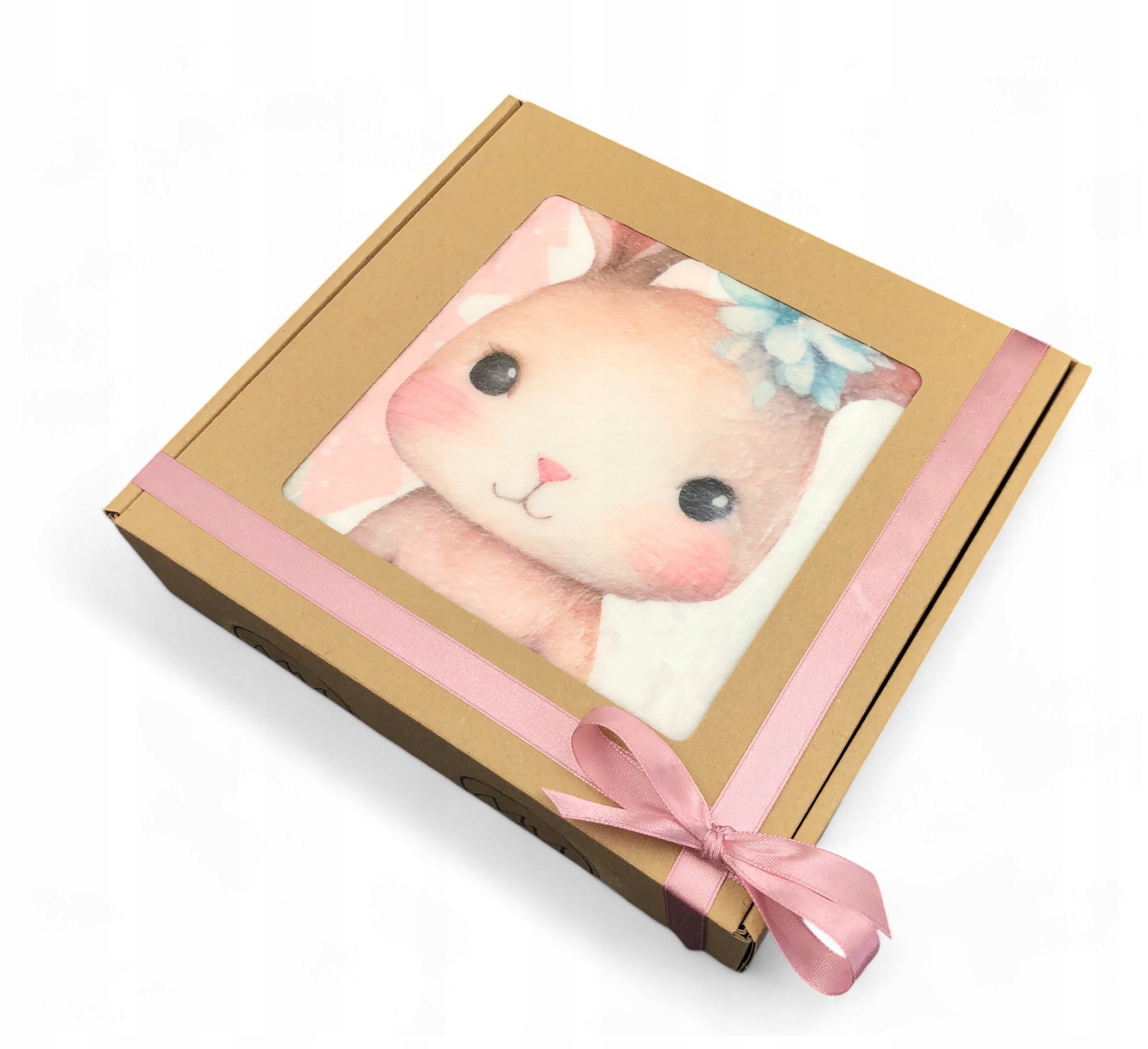Одеяло упаковано в элегантную экологическую коробку с окошком и перевязано атласной лентой. Идеально подходит в качестве подарка будущим родителям.