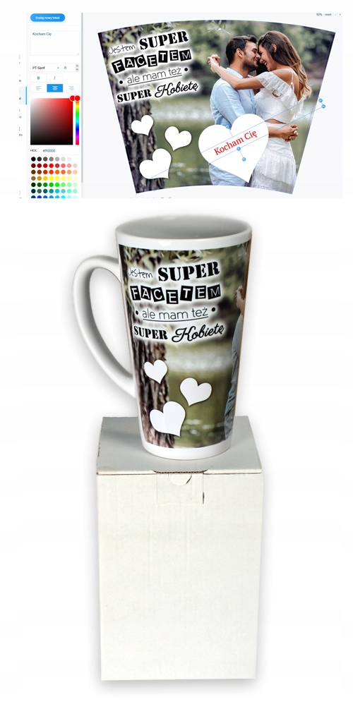 После приобретения услуги дизайна мы можем нанести на кружку надпись по вашему выбору. Мы можем свободно персонализировать каждый из них — добавлять свой контент, названия, менять шрифты. Мы можем разместить его самостоятельно или добавить рядом вашу фотографию.