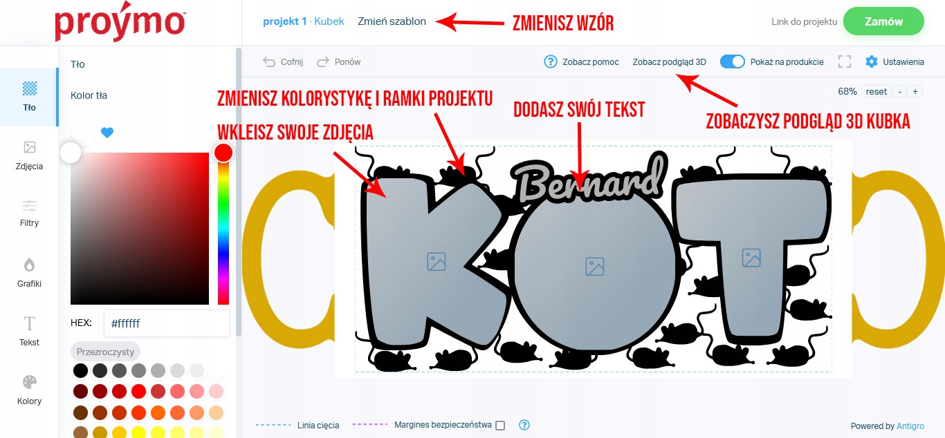 Вы покупаете чашки на аукционе, и вы готовите свой дизайн, используя бесплатный мастер, доступный по этой ссылке -> https://tiny.pl/wvjl7