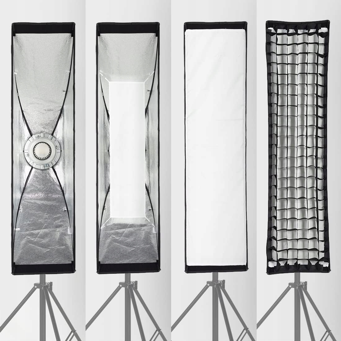 Softbox находится внутри и за пределами двух слоев диффузоров, а также удаляется черная сетка со сотовой структурой. Благодаря этому можно получить много вариантов освещения, обеспечивающих лучшее ровное освещение.