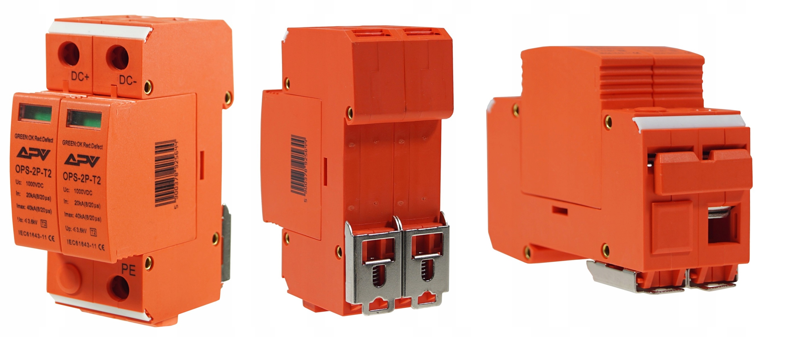 - Два ограничителя перенапряжения APV, 2P класс C [T2], 1000 В постоянного тока, 32 А, li>