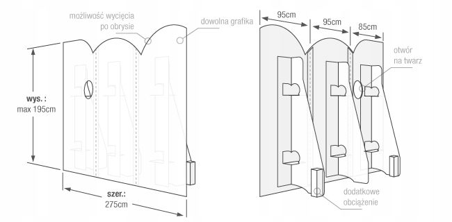 3. С двусторонней графикойи стальной арочной опорой: в форматах бордюров (ширина х высота) 95х95, 95х145, 95х195см