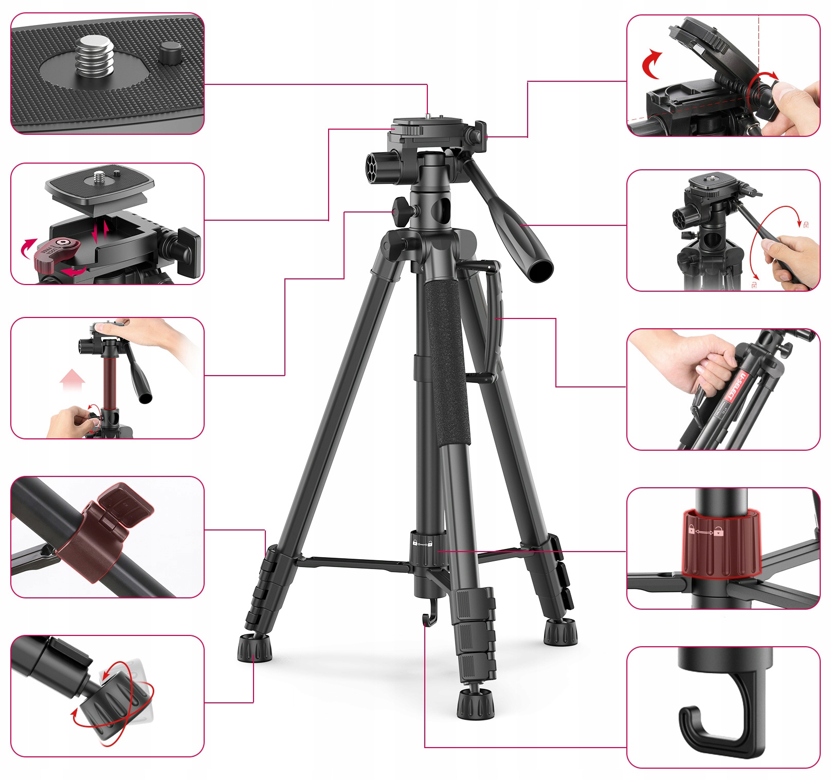 ✔️ Встроенный уровень — облегчает установку штатив равномерно.