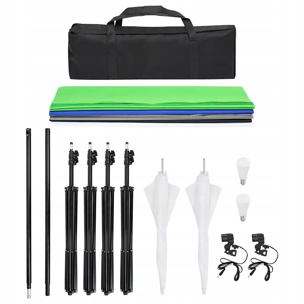 - Отличные характеристики: Лампы дневного света с цветовой температурой 5500 Кельвинов позволяют делать естественные снимки. Зонты обеспечивают мягкий свет, исключающий резкие тени.