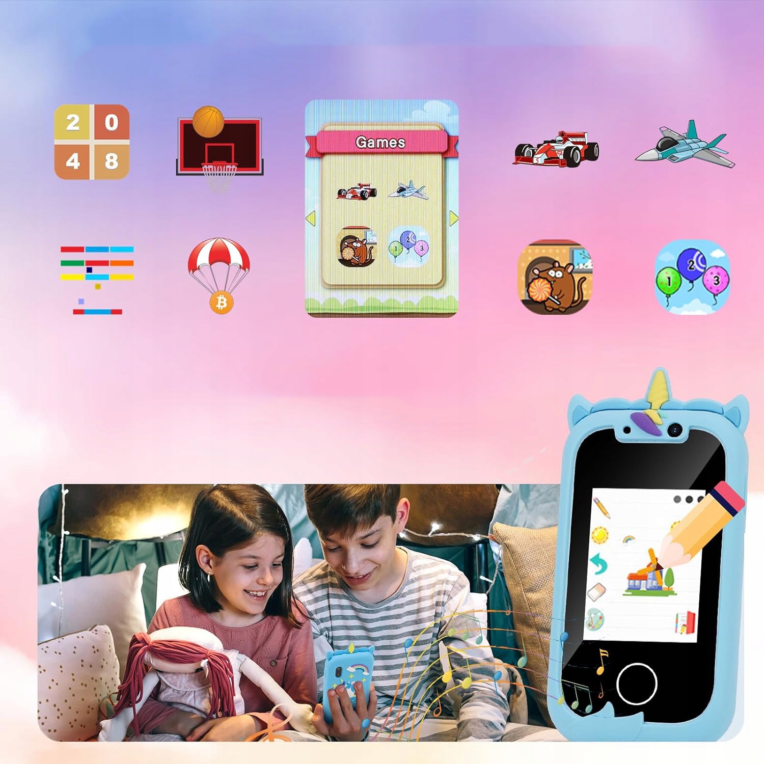 👍👍👍 Безопасный, прочный, ударопрочный — этот музыкальный плеер для малышей Изготовлен из качественного, нетоксичного мягкого пластика, безопасен и приятен для детской кожи. Ударопрочный корпус обеспечивает эффективную защиту от падений и продлевает срок службы вашего устройства. Вы также можете настроить яркость экрана смартфона, чтобы защитить глаза детей.