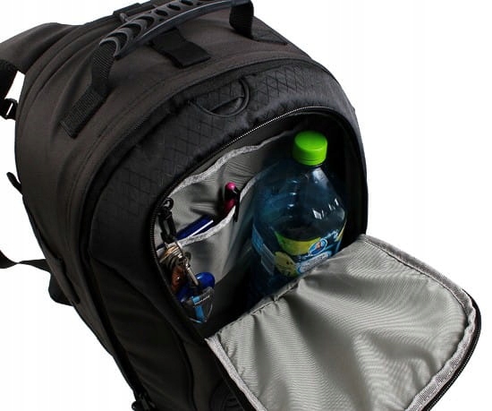 - Переднее отделение. Очень вместительный, имеет множество отделений, карманов и карабин. В нем можно разместить, например, куртку, бутылку, дополнительные фотопринадлежности, документы, ключи, ручки, книгу и т. д.