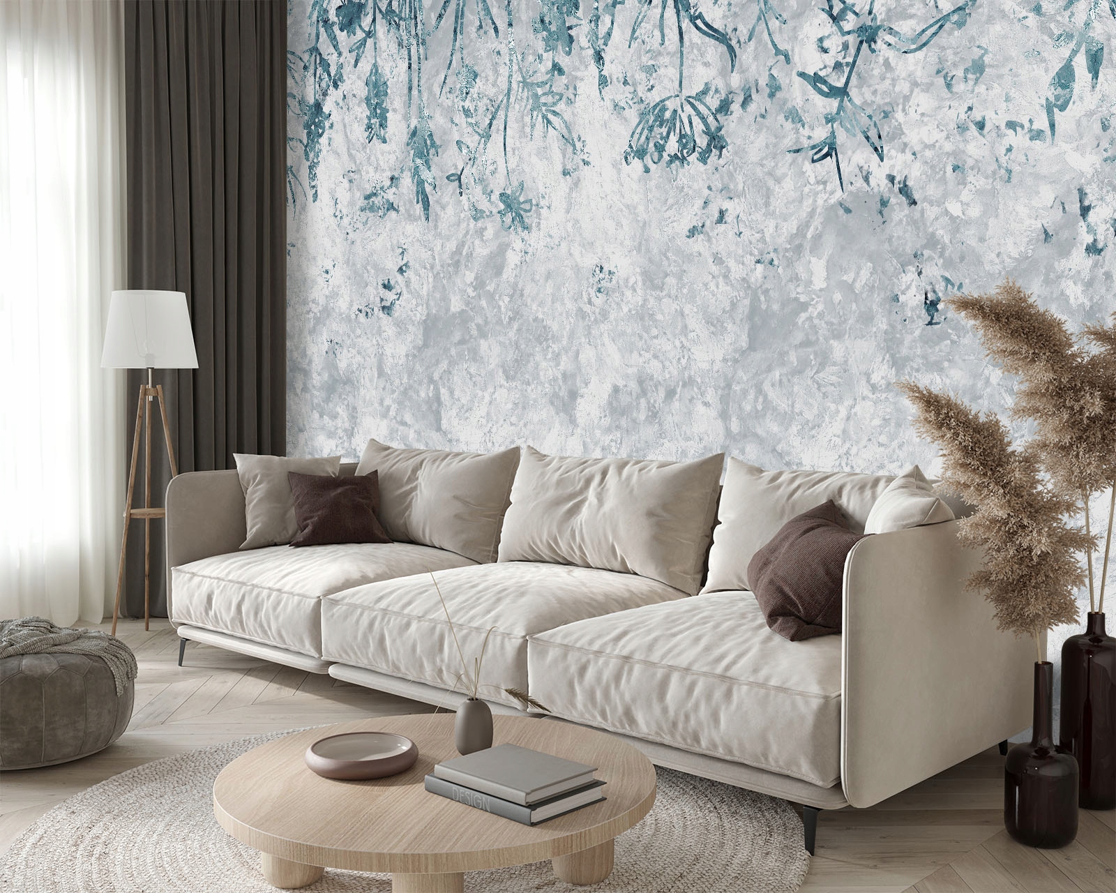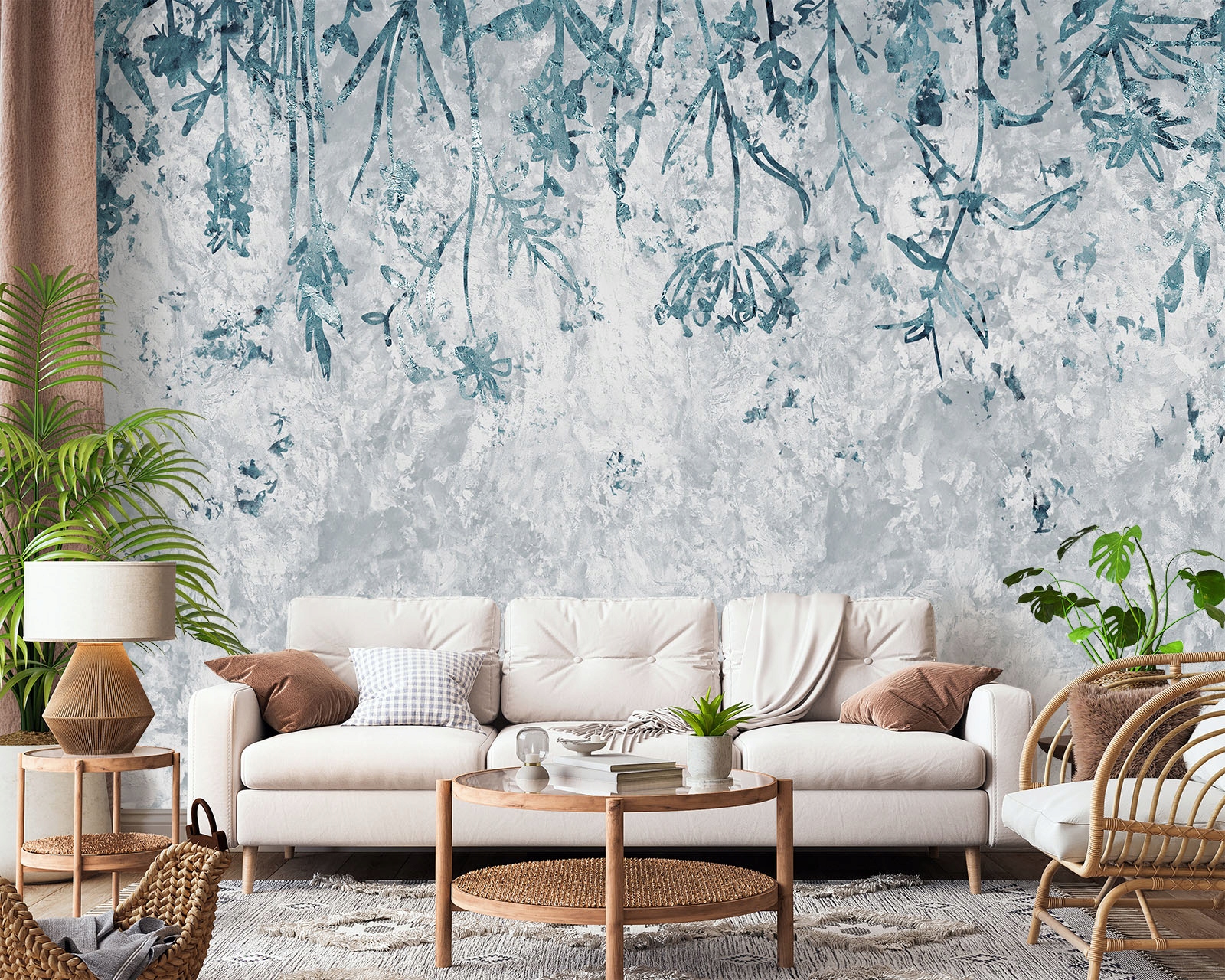 ФОТОШПАЛЕРИ БЕТОН СИНІ КВІТИ РОСЛИНИ вітальня