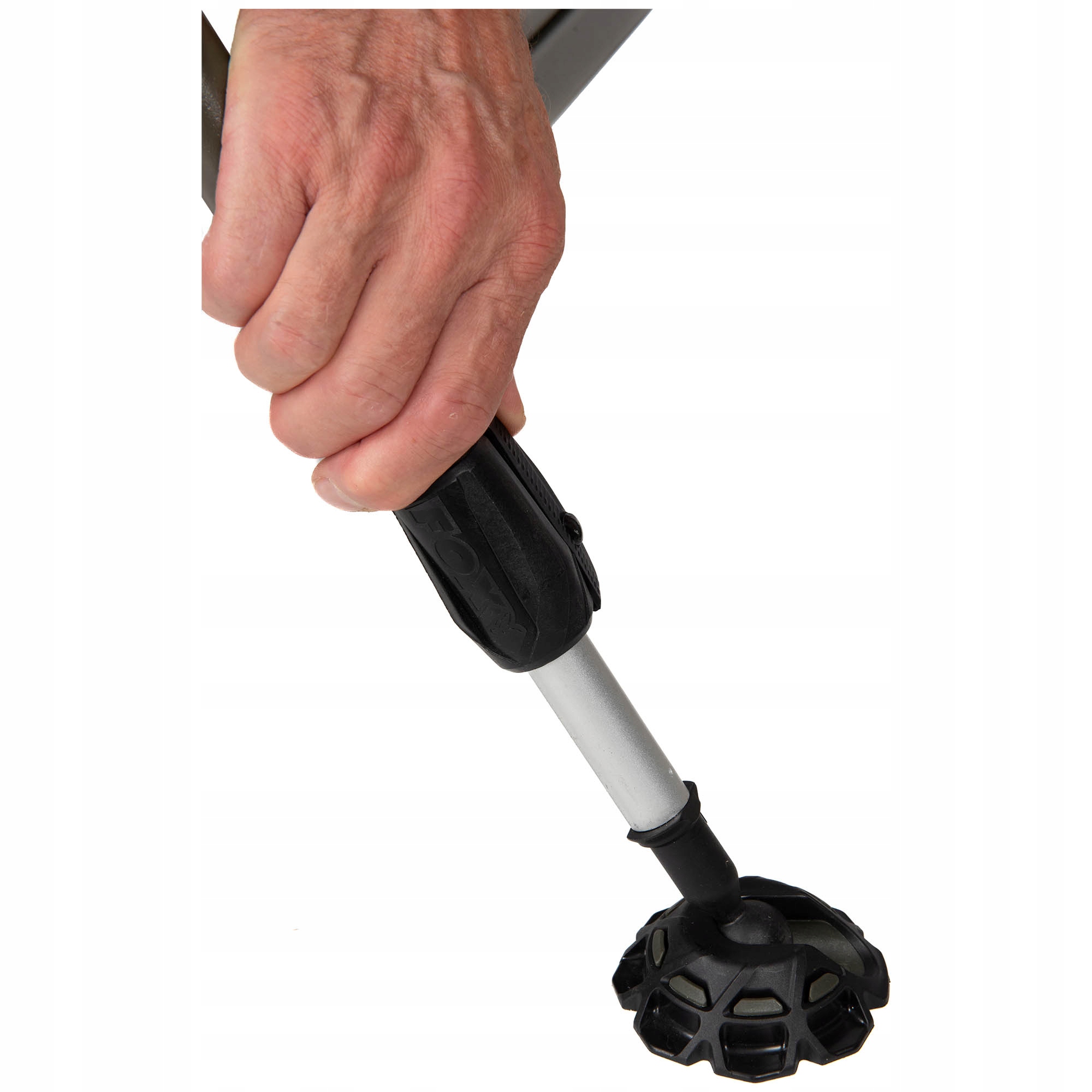 Конструкция основана на легкой алюминиевой раме Duralite с шестью ножками в системе максимальной поддержки. Три двойных комплекта ножек обеспечивают равномерное распределение веса и устойчивость, сохраняя при этом общий вес кровати небольшим. Полная система поясничной поддержки в зоне головы, средней части и ног обеспечивает оптимальную жесткость и комфорт сна. Высоту легко регулировать благодаря пружинному механизму с кнопкой, что позволяет легко подогнать кровать под рельеф местности.