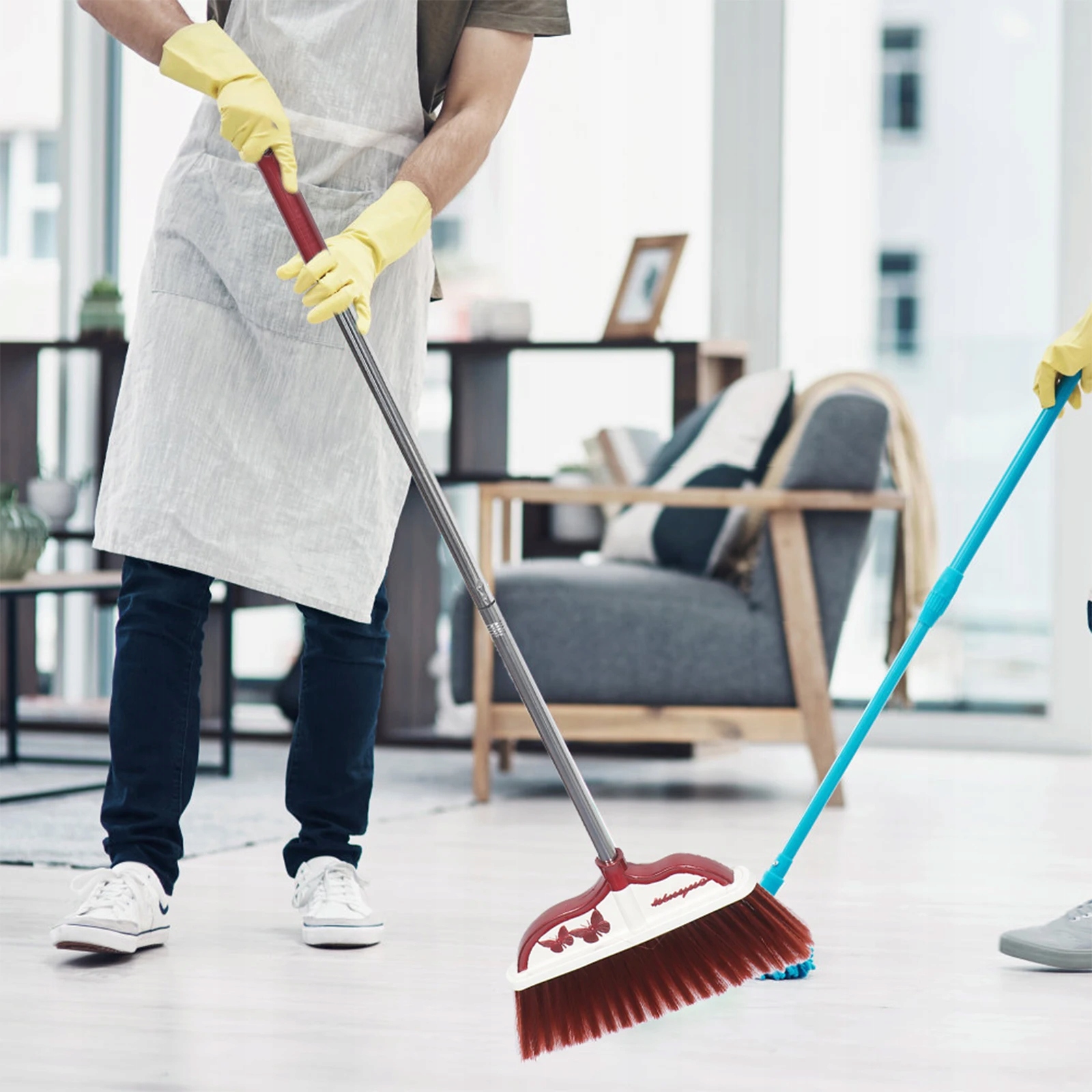 Метла легко адаптируется к земле, подметать пол нелегко утечь пепел и других