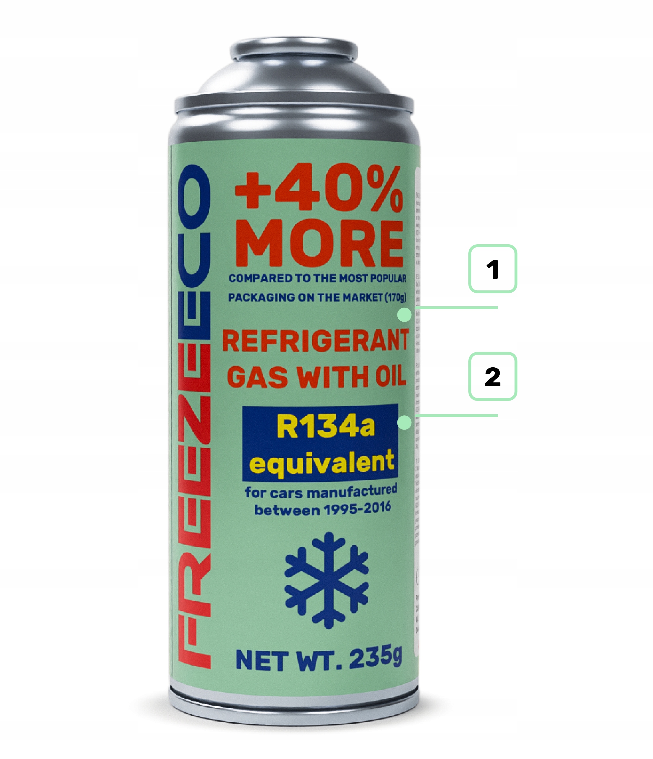 The 400ml container has a built -in disposable freezeco cable, allowing to top up the content of the packaging to the air conditioning system of 90%