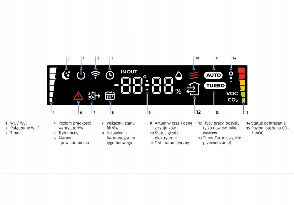 - Управление по Wi-Fi - управляйте устройством из любого места с помощью приложения Blauberg Home, доступного на Android и iOS. Устанавливайте график, контролируйте уровень CO₂, tVOC, влажность и температуру.