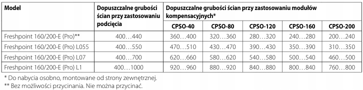 * - требует приобретения компенсационной площадки для толщины стен менее 400 мм (описание ниже).