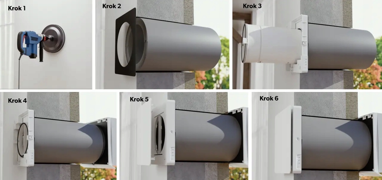 Устройство рассчитано на стены толщиной от 240 до 440 мм, что делает его пригодным для большинства стандартных конструкций. Кроме того, доступ к фильтрам и элементам обслуживания осуществляется изнутри помещения, что обеспечивает простой и удобный уход без необходимости демонтажа устройства.
