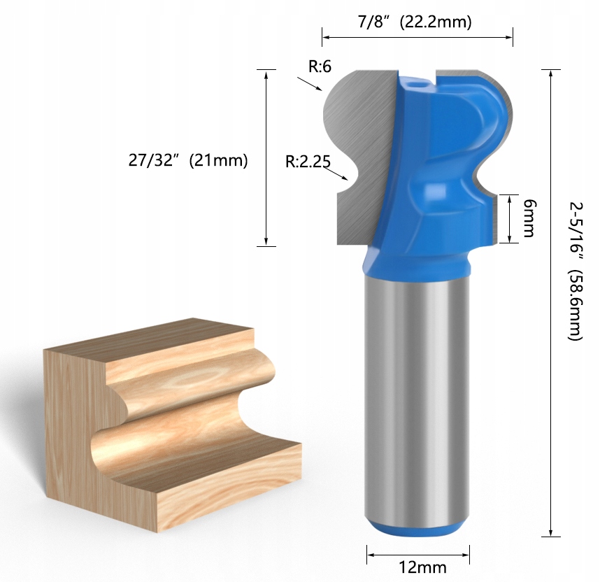 - Радиус скругления R6mm+R2,25