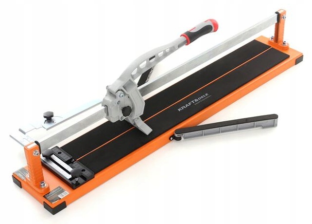 Плиткорез KD1579 от Kraft&Dele состоит из устойчивого основания из толстого стального листа, покрытого слоем технической микрорезины, двух параллельных направляющих и скользящий по ним режущий блок.