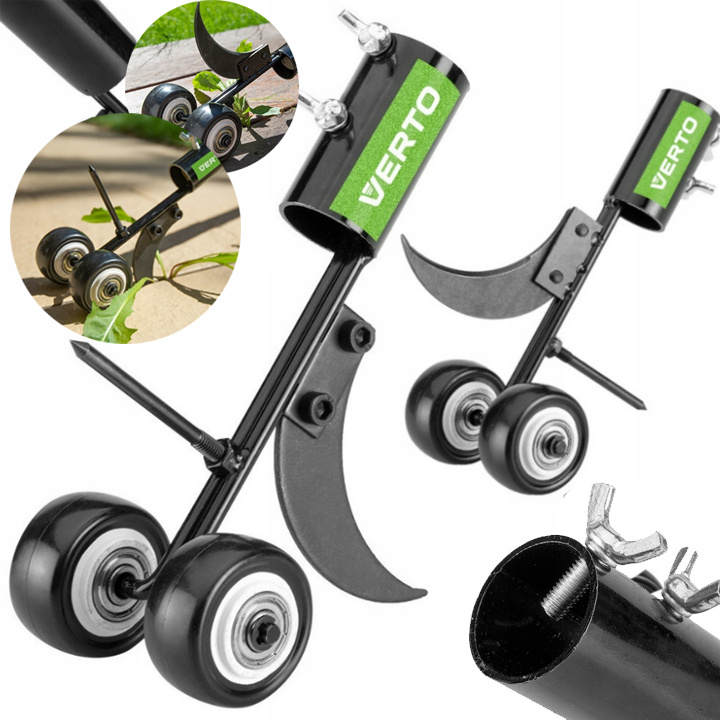 - Эффективность работы: Измельчитель сорняков Verto оснащен колесами диаметром 4,5 см и шириной 2,3 см, что позволяет легко и эффективно удалять сорняки из щелей тротуаров, проездов, дорожек и бордюров. >