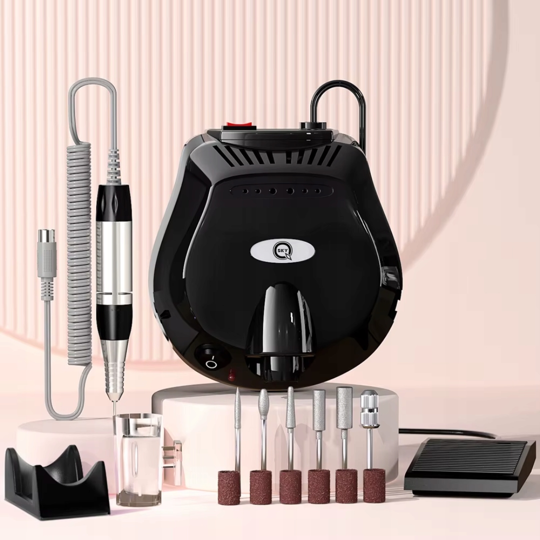 Профессиональный фрезерный станок QSKY в элегантном черном цвете предлагает высокую мощность и точный контроль скорости, благодаря чему он создает эффект салона, не выходя из дома. В набор входят все необходимые фрезы и аксессуары – готовы к выполнению маникюра и педикюра сразу после распаковки.