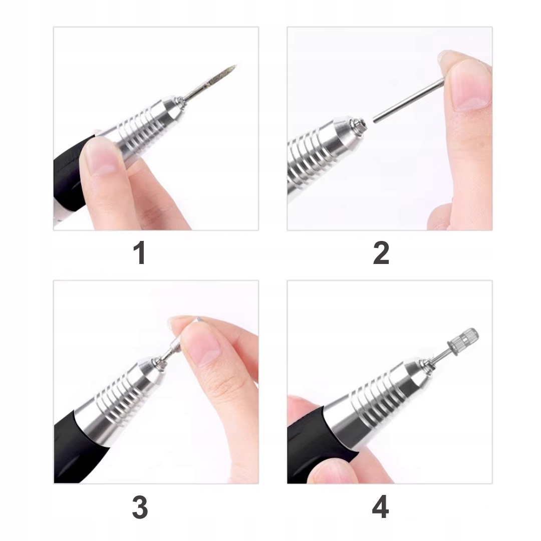 4️⃣ Держите фрезу ровно над ногтевой пластиной или кутикулой, не нажимайте слишком сильно.
