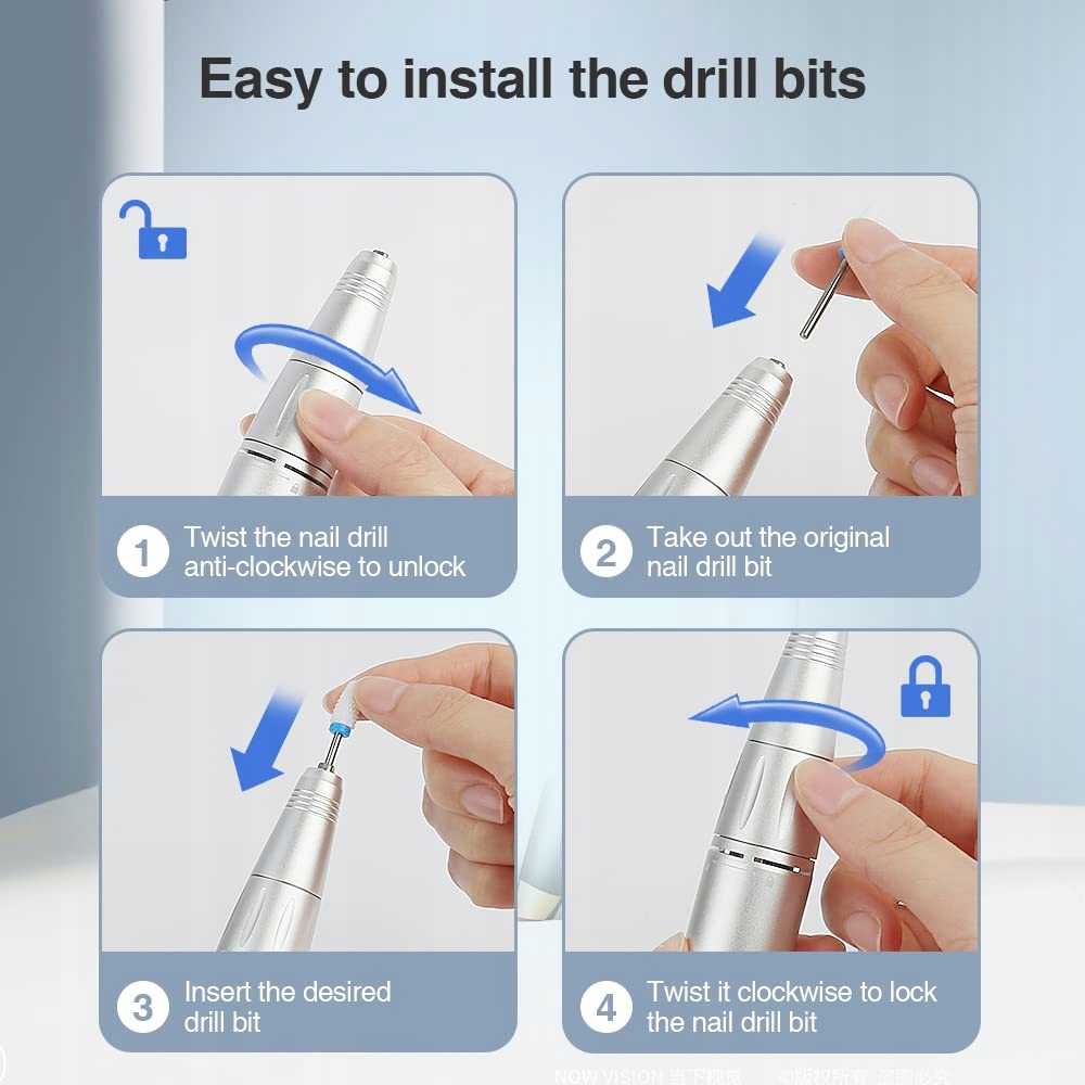 Нашу профессиональную электрическую пилочку для ногтей с 8 типами кончиков можно использовать для универсальной придания формы