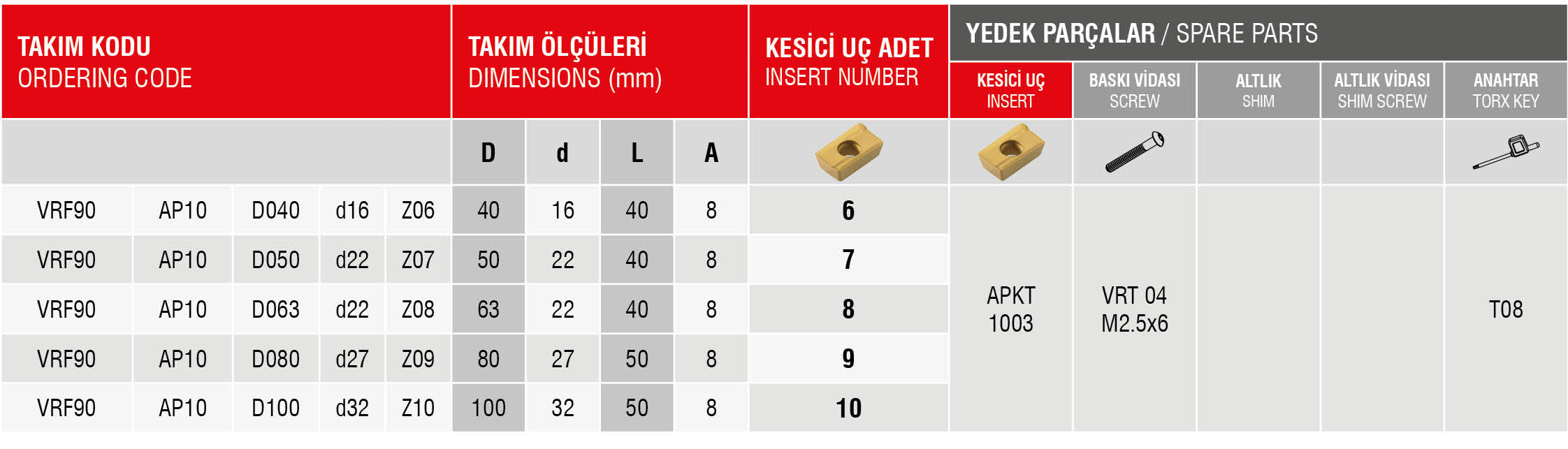 ФРЕЗЕРНА ГОЛОВКА fi 40 d16 Z06 APKT 1003 90 градусів