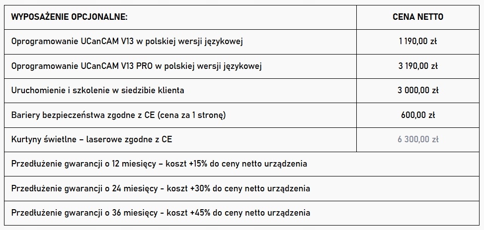 - Программное обеспечение: UCanCAM V12 на польском языке (опционально)