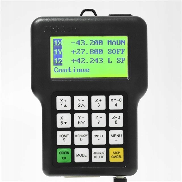 - Станок оснащен DSP-контроллером, который одновременно является панелью управления. Кроме того, он позволяет просматривать текущие параметры обработки на дисплее и изменять их.