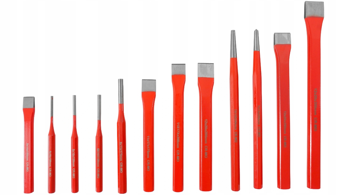 В комплект входит 12 стамесок, пробойников и пробойников: