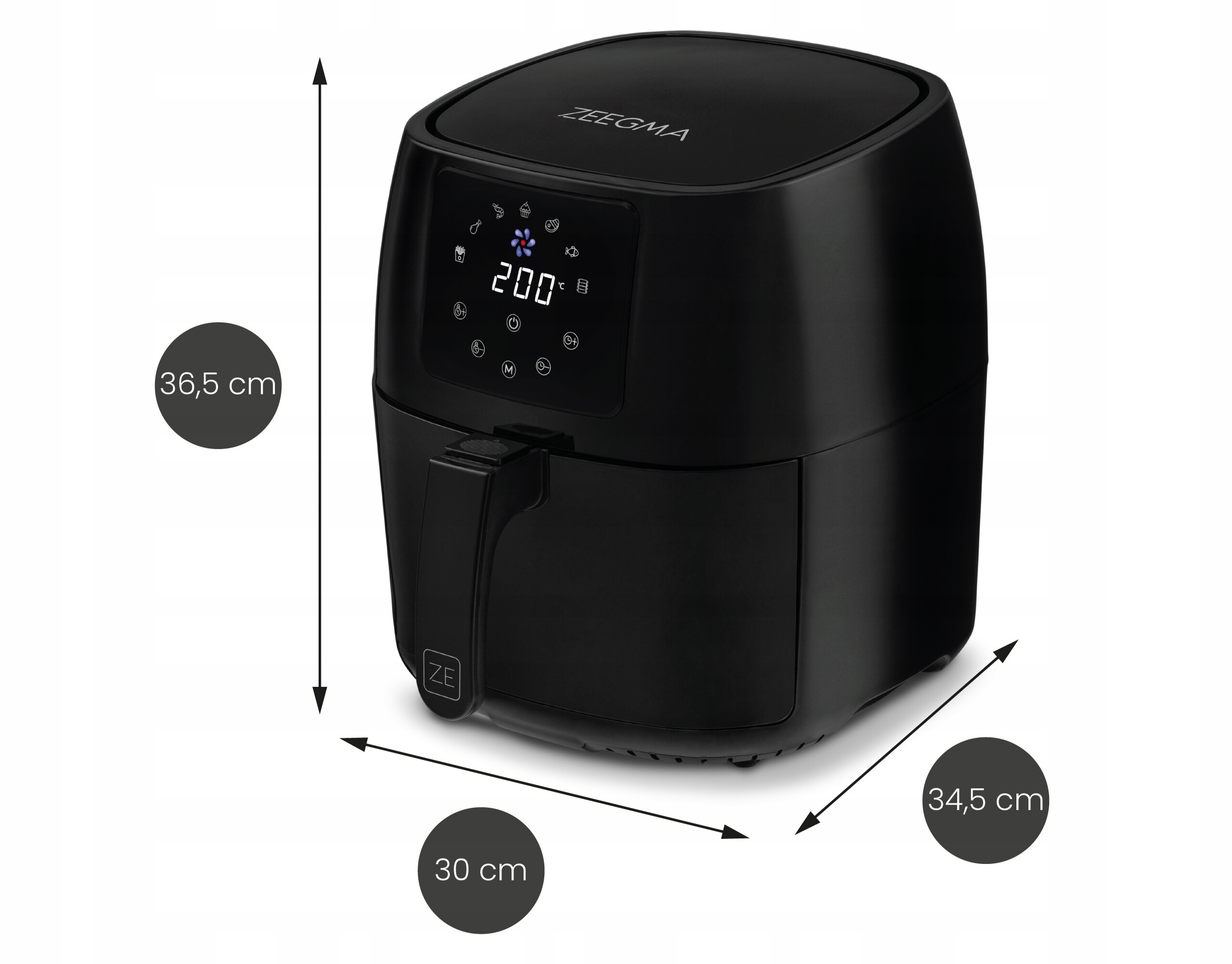The Zeegma Fryer Knapper Pro b>оснащен функцией fподготовки воздуха, а это означает, что для приготовления блюда потребуется всего лишь ложка масла!