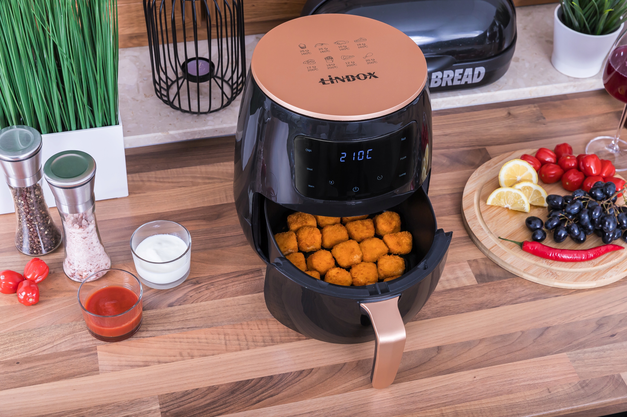 - ✅Для жарки используется горячий воздух, что исключает необходимость использования жира для приготовления блюд.