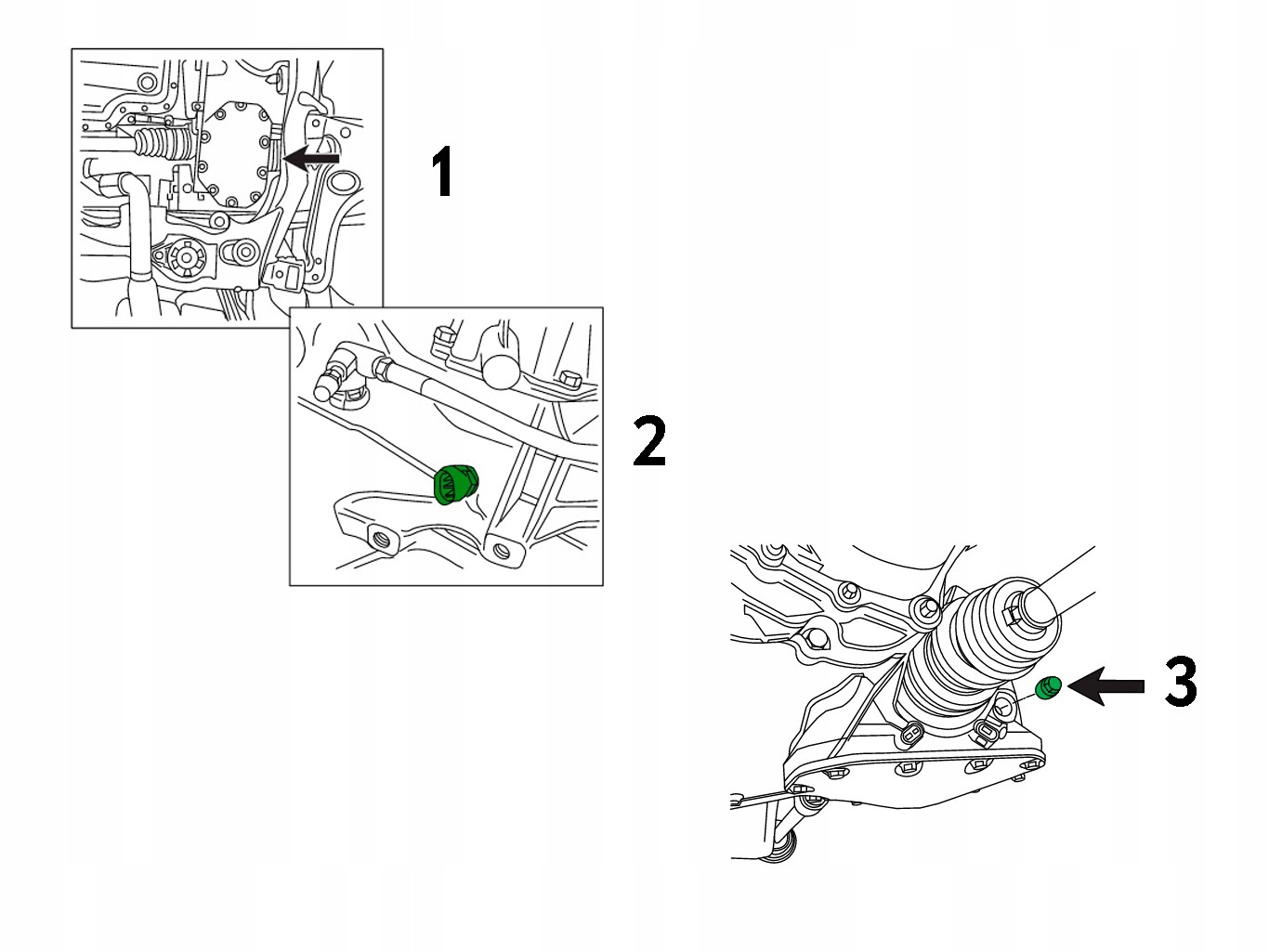 - заливка свежего масла - есть два метода: первый путем откручивания Датчик передачи заднего хода, чертеж №. 2 лейте масло до тех пор, пока оно не появится в переливной пробке, второе лейте масло через переливную пробку, пока масло не выльется наружу
