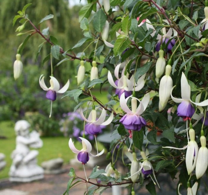 Дельта Сара — уникальный зимостойкий сорт в нашей линейке фуксии. В отличие от других сортов, устойчивых к низким температурам, Дельта Сара имеет крупные цветки. Необычные – полумахровые – синие цветки с белым акцентом делают этот сорт очень популярным среди конечных потребителей продукции. Благодаря сильному росту и солидной форме растение Дельта Сара прекрасно подходит для продажи как многолетнее растение.