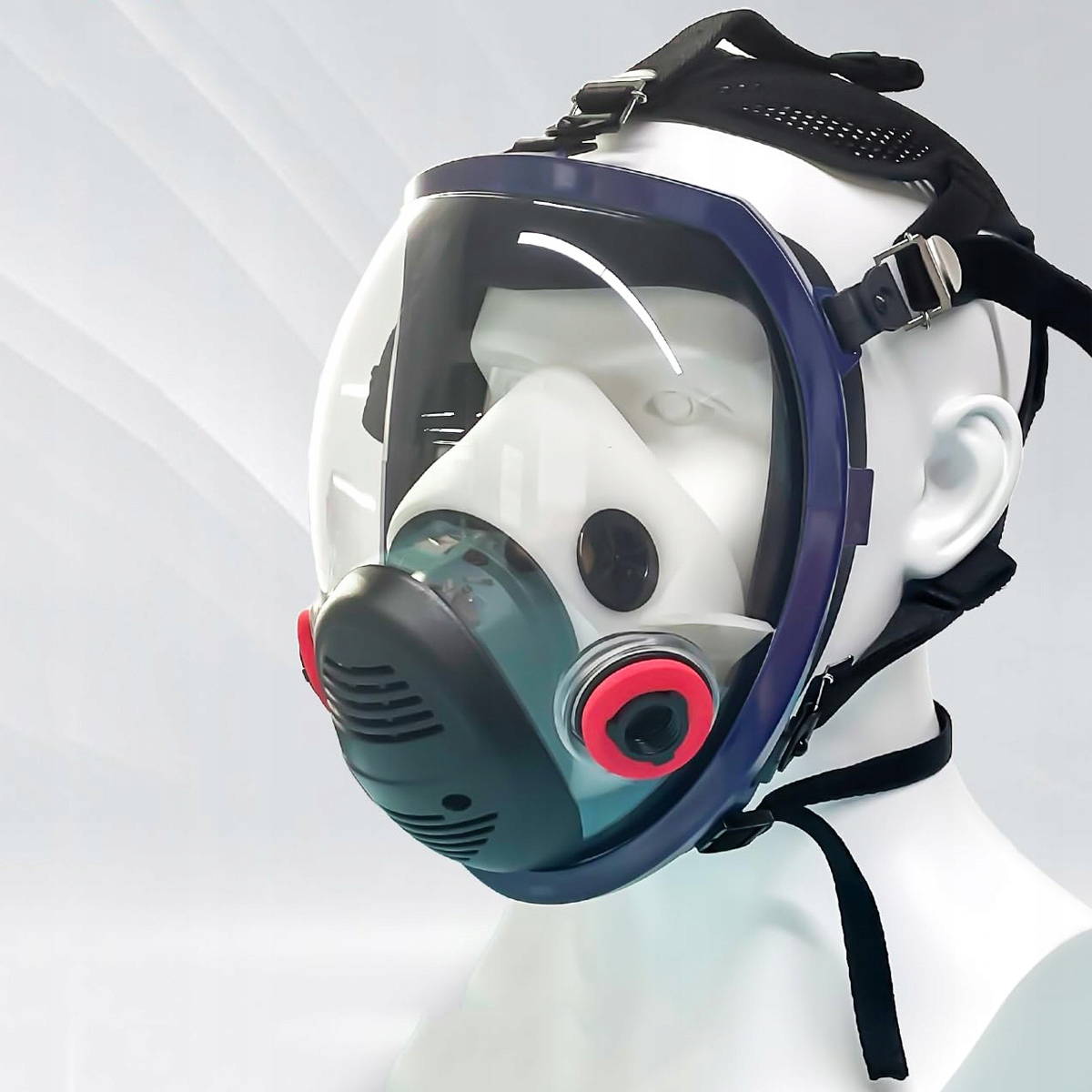 - В полнолицевой маске с фильтром используется профессиональная система двойной фильтрации, которая эффективно фильтрует любые пары или испарения органических химикатов, пыли и других частиц в воздухе. .