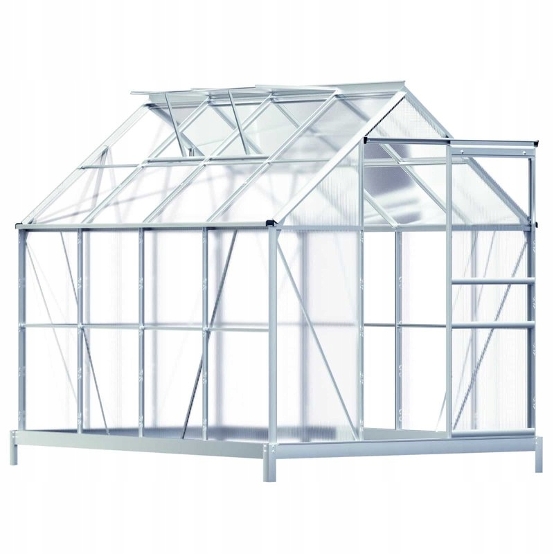 Теплица 7,6 м³ с 2 мансардными окнами, дождевая желоб и стальной фундамент. Качественная, устойчивая теплица с двумя мансардными окнами, состоящая из анодированных алюминиевых профилей и теплоизоляционных плит с полыми камерами.