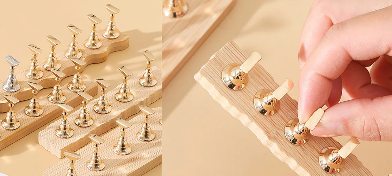 держатель ногтей деревянный магнитный с золотыми пешками h2>