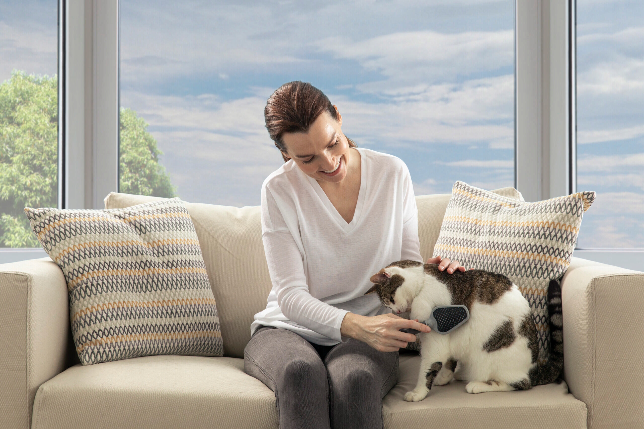 Используйте инструмент для удаления покрытия, как щетку, аккуратно водя им по шерсти вашего питомца в направлении роста волос. Начните с шеи животного и двигайтесь к хвосту,соблюдая особую осторожность возле живота, ног и интимных мест. Избегайте чрезмерного расчесывания шерсти в одном месте. Используйте длинные, нежные движения, отводя инструмент от кожи животного. Хотя специальная функция SkinGurad® (защита кожи) не позволяет краям инструмента впиться в кожу, слишком глубокое или слишком сильное расчесывание может вызвать ее раздражение. Если вы заметили покраснение или раздражение, прекратите расчесывать.