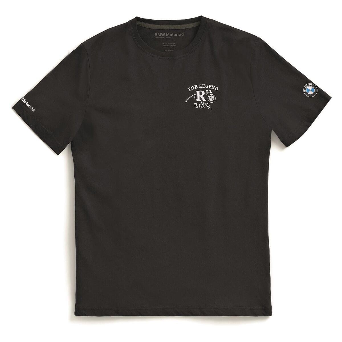 - На спине футболки крупный принт с надписью «The Legend R51» и небольшой логотип BMW.