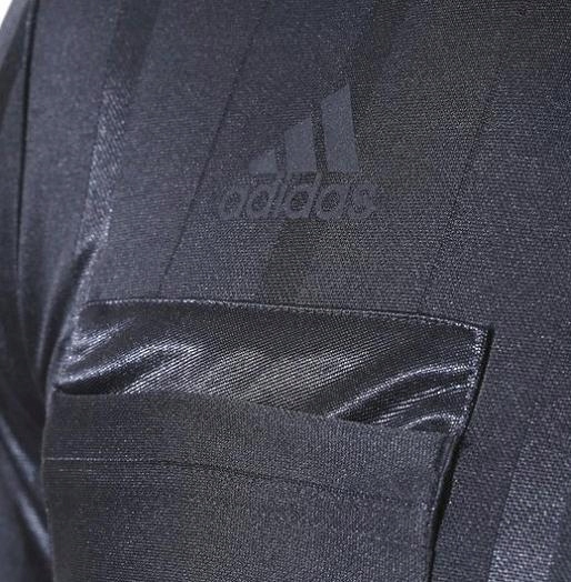 Мужская судейская рубашка ADIDAS UEFA CHAMPIONS LEAGUE. Изготовлена с использованием инновационной технологии CLIMACOOL. Полностью чёрный с вертикальными полосками и белыми принтами UCL. На груди два кармана на застежке-липучке. Низ рукавов заканчивается короткой манжетой.