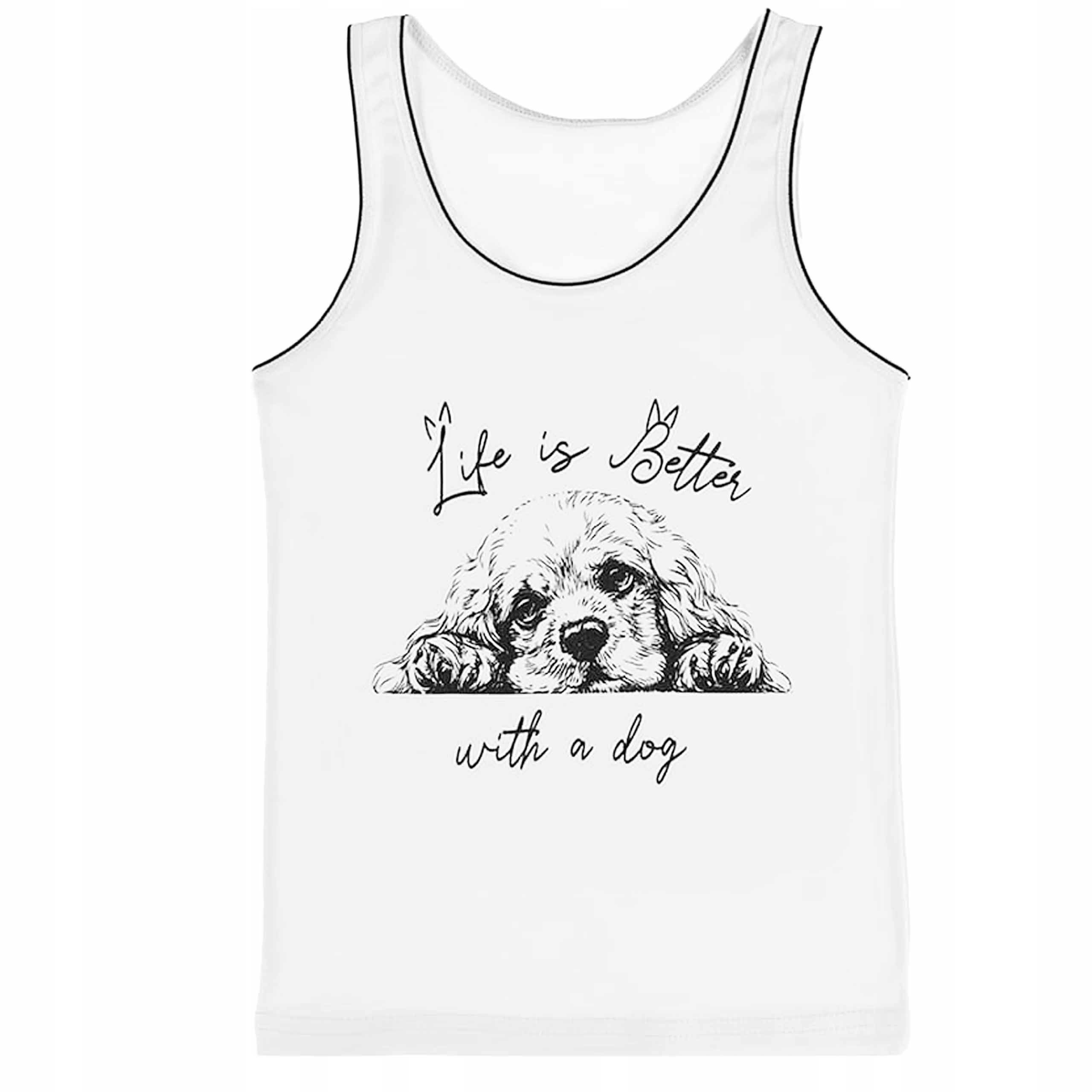 Футболка белая на более широких бретелях. Футболка отделана тонкими резинками. Спереди милая собачка. Идеально подходит для зимы и лета.