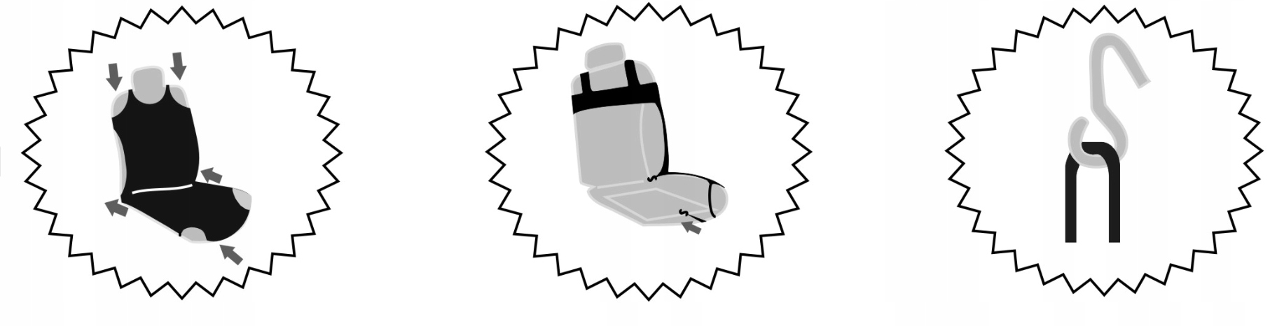 Установка очень проста и занимает мало времени! Надевать футболку на сиденье нужно сверху (см. фото на вправо), затем потяните футболку вниз. Последний этап – прикрепляем его с помощью крючков (входят в комплект).Крючки прикрепляем к резинкам, вшитым в футболки и нижним краям нашего автокресла. Готовый! теперь вы можете наслаждаться защитой салона вашего автомобиля.