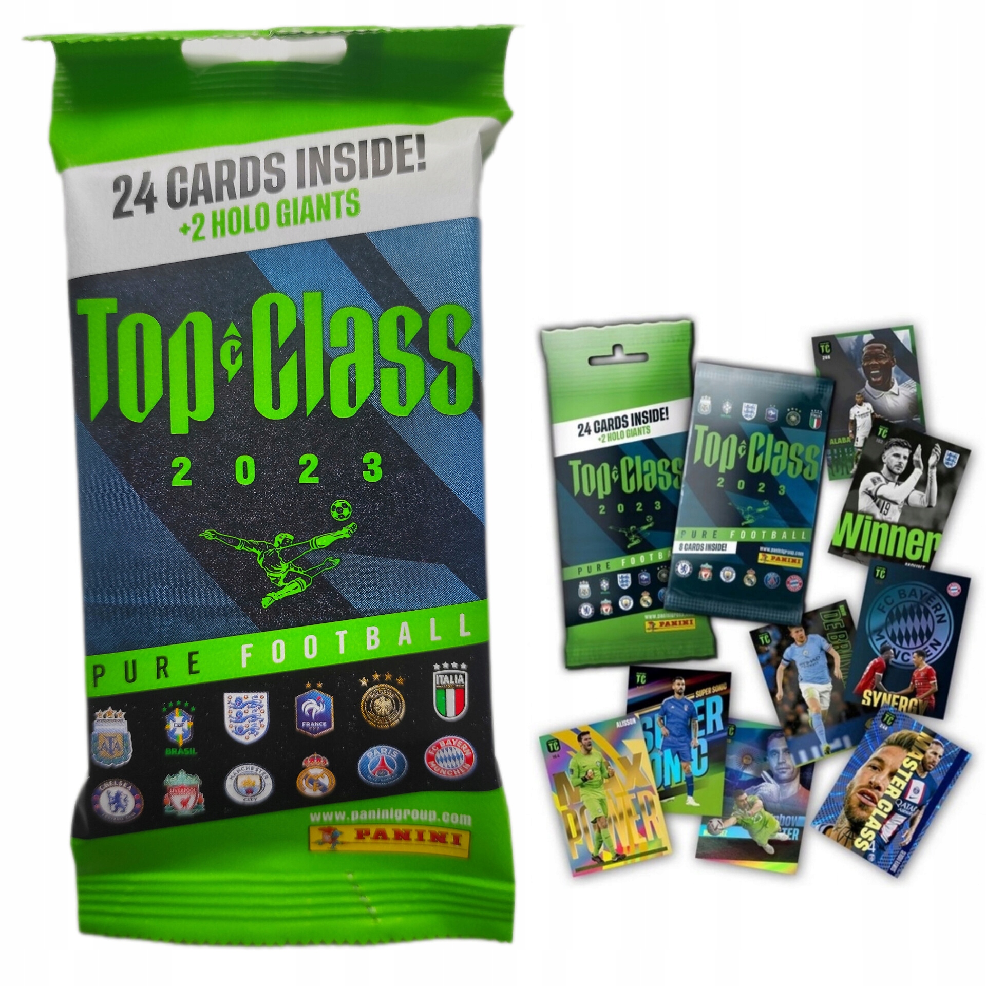 Коллекцию Panini Top Class 2023 отличает полностью обновленный дизайн и новые категории карточек, которые вернут вам радость футбола. Они будут включать, среди прочего: Карты BASE, SUPERSONIC, WINNER, MAX POWER, RAINBOW MASTER, SYNERGY, MASTER CLASS, NEW SENSATION и UNBEATABLE — каждая из последних доступна в пяти цветовых вариантах. Отдельного внимания заслуживает карта PURE FOOTBALL.