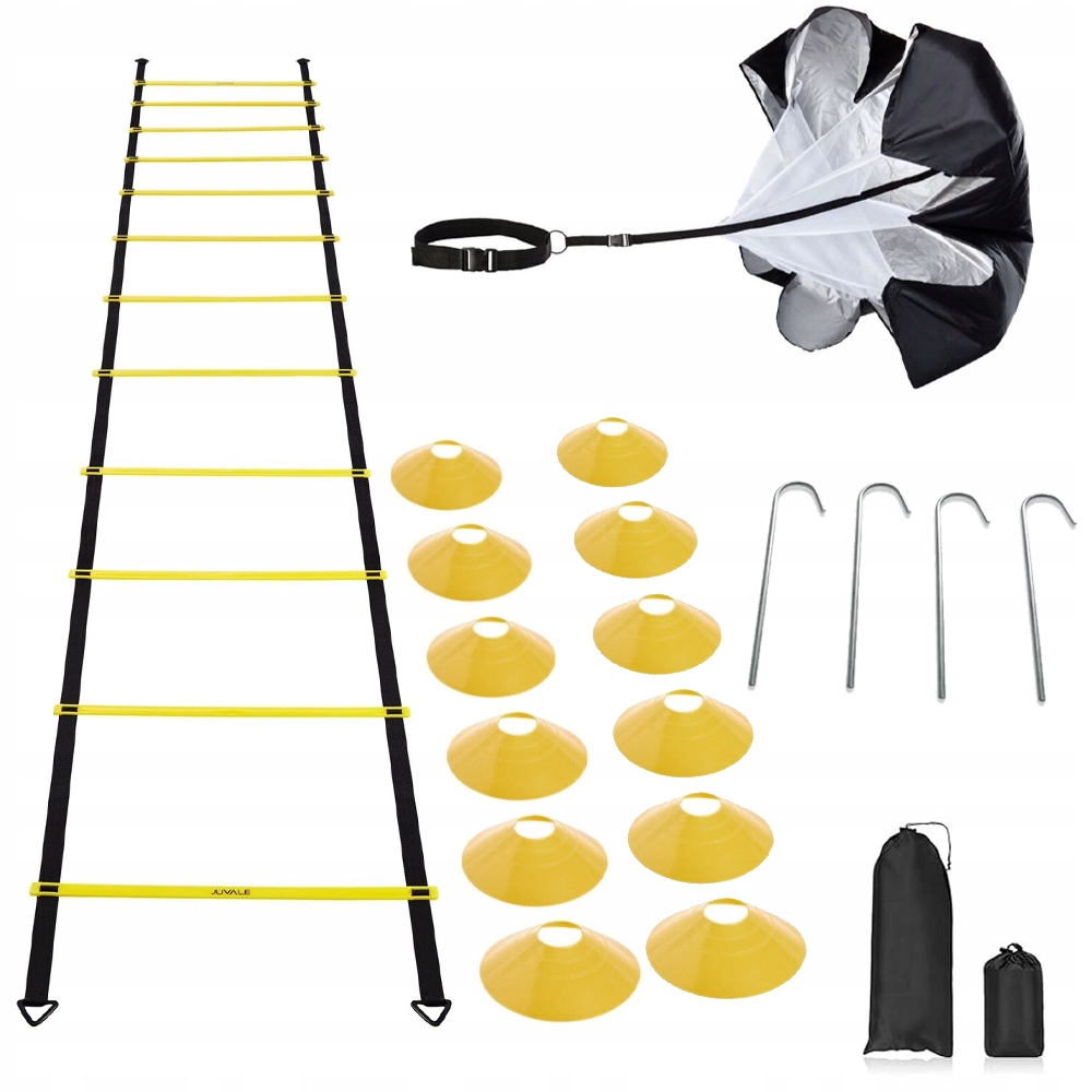 - Наше футбольное тренировочное оборудование включает в себя тренировочную лестницу 20 футов длиной, 12 желтых дисковых конусов, 1 зонт сопротивления, 4 шипа для заземления и 1 сумка для хранения. Изделие состоит из высококачественного полипропиленового материала + плотного тканого мешка.