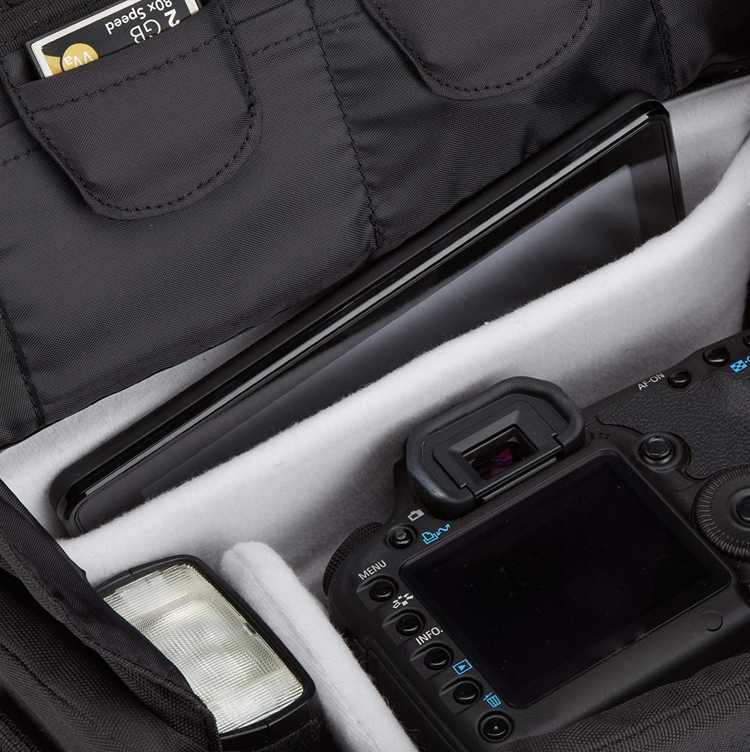 Его внутреннее пространство был специально разработан, чтобы обеспечить индивидуальную регулировку отделений, которая идеально подойдет к вашей DSLR-камере. два объектива и другие необходимые аксессуары.