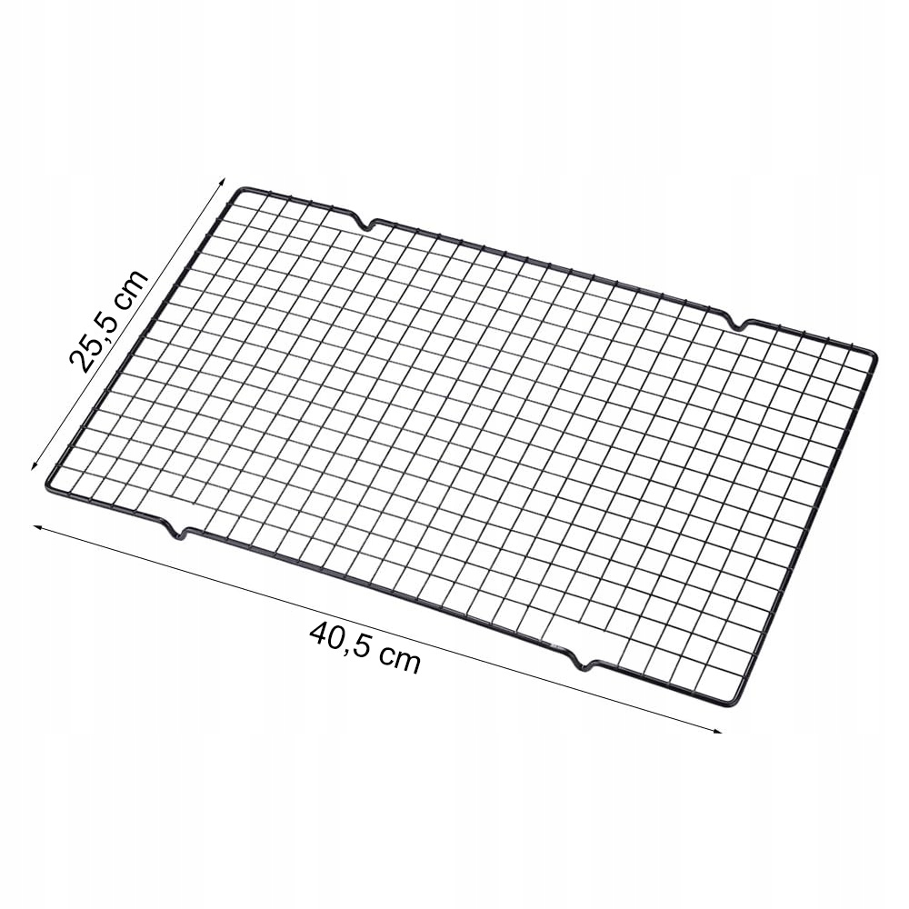 прямоугольная решетка из черного металлического провода. Благодаря решению решетки выпечка будет остывать быстрее, а их дно не укротит. Это также идеально подходит для остекления теста и печенья с глазурью.