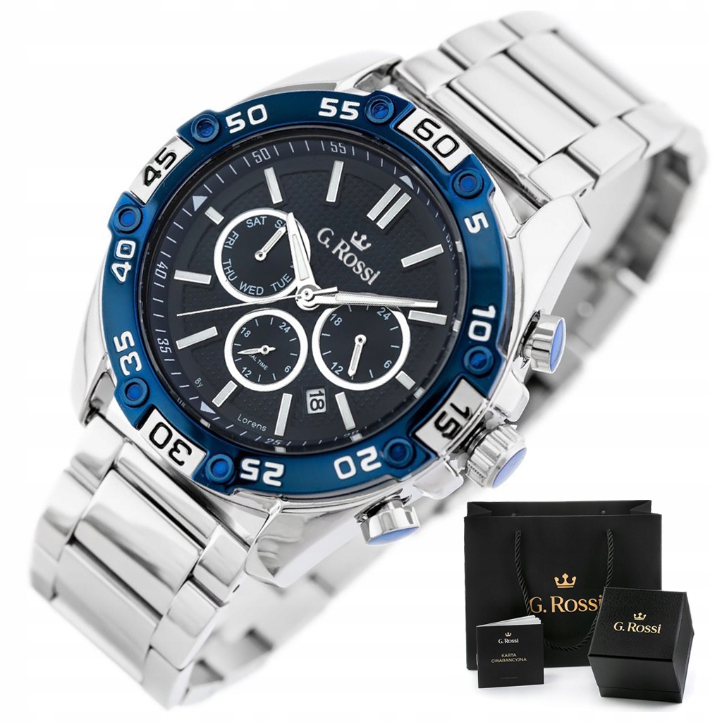 МУЖСКИЕ ЧАСЫ G. ROSSI ЭКСКЛЮЗИВНЫЙ ХРОНОГРАФ, стальной указатель даты, ГРАВИРОВКА НА КОРОБКЕ