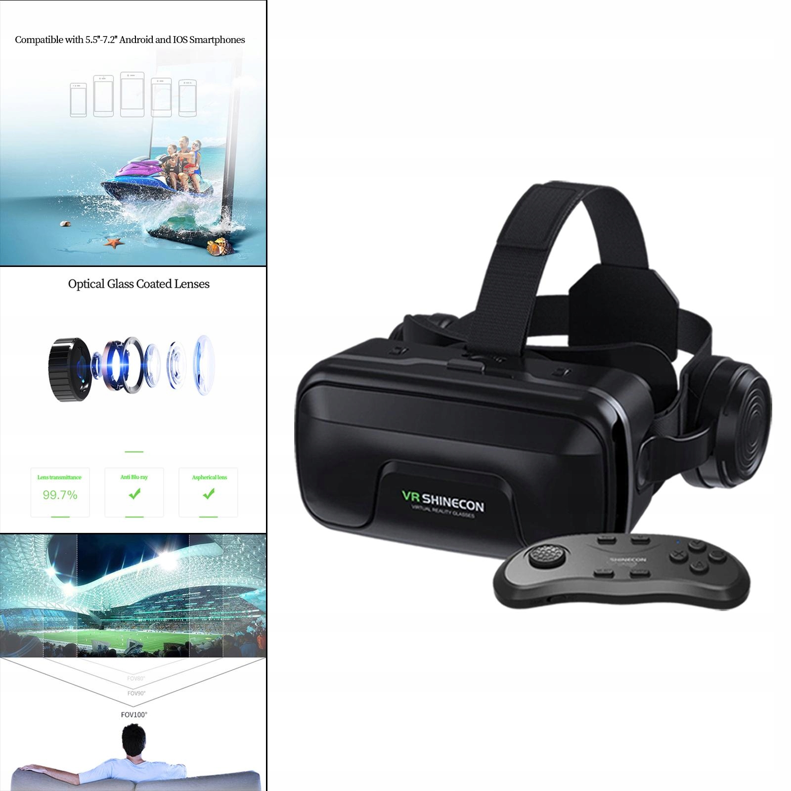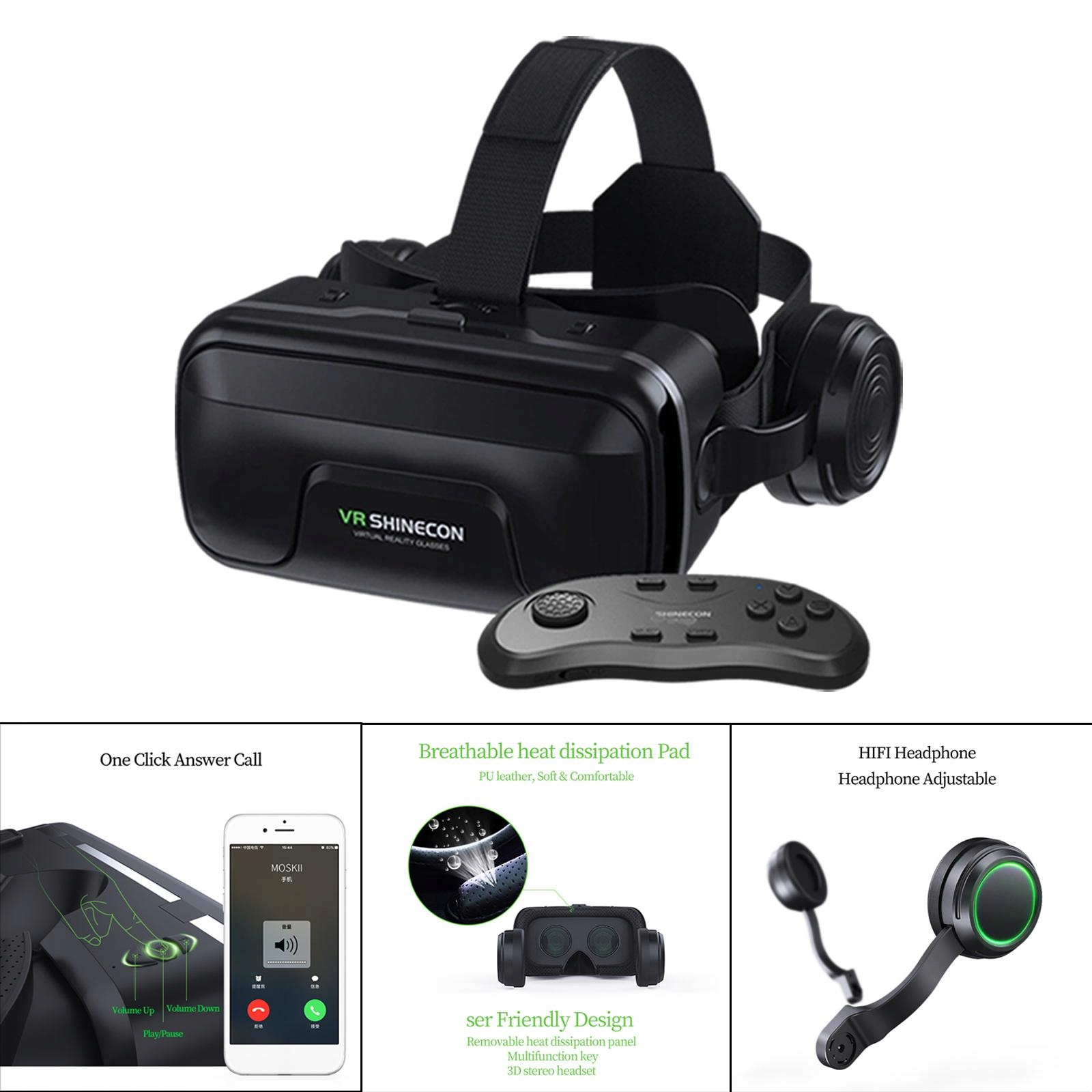 Удобно: эргономичная повязка на голову, кожаная маска, удобная для ношения в течение долгого времени, легко чистота. - 7,2 дюйма, как Android, так и iOS.