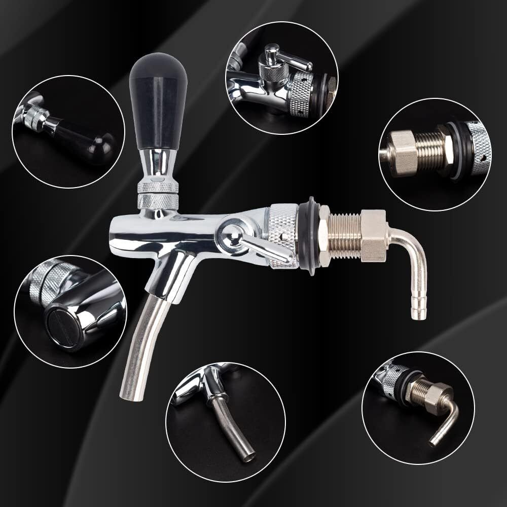 🍺【Регулируемый плетёный поток】 Кран для разливного пива с переключателями потока, дозатором с регулируемым потоком пива и контролем пузырьков, полным расходом воды от 0 до 100%, что удобно в эксплуатации и может управляться в соответствии с вашими потребностями.
