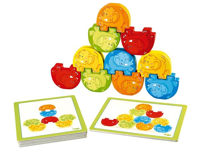 дрожащие слоны Хабы очень весело для всей семьи. Это может быть первая игра навыков для вашего 2-3-летнего. Расставьте слонов друг на друга, чтобы шаткая пирамида не разрушила. Нарисуйте доску и попытайтесь организовать то же здание. Победитель - игрок, который безупречно расположена нарисованная пирамида. Благодаря Хабе, вы ждете не только большого удовольствия, но и улучшения моторных навыков, упражнения, чтобы следовать правилам и способность согласоваться с неудачей.