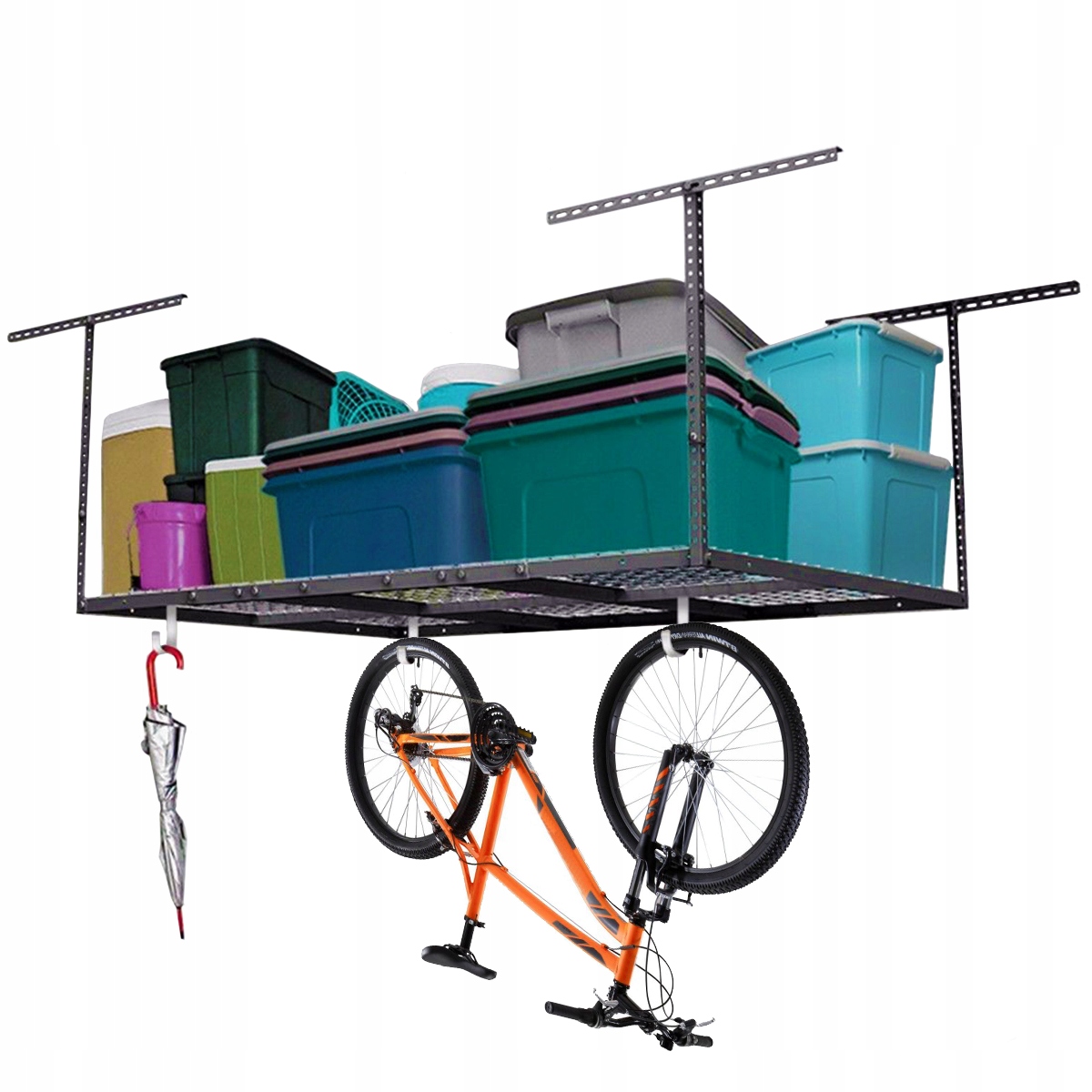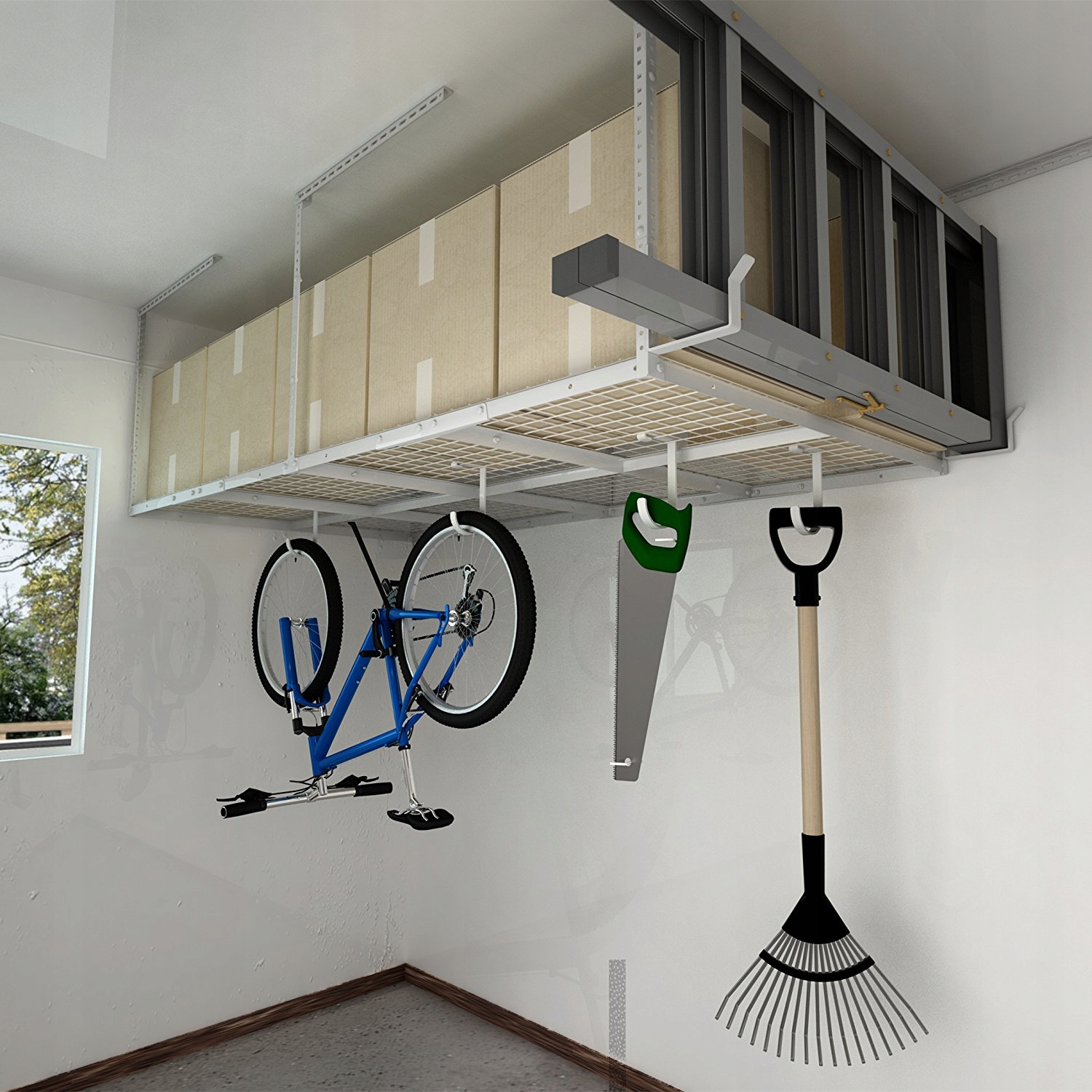 Крючки для гаражных полок Ergosolid расширяют возможности организации пространства под полками. Благодаря крючкам и подвесным полкам на стене и потолке вы легко получите дополнительное пространство в гараже, переместив его с пола на подвесные полки. Качественные системы из холоднокатаной стали гарантируют высокую долговечность и надежность эксплуатации. Полки доступны в нескольких размерах и двух цветах, чтобы было проще адаптировать конфигурацию под свои нужды, также вы можете дополнительно приобрести специальные крючки для подвешивания вещей на полках.